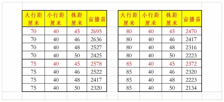 3、如下表格为播种密度,仅供参考。