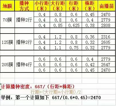 3、如下表格为播种密度,仅供参考。