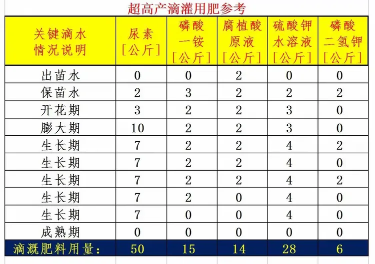 1、弘昌212属于高水肥作物,底肥以农家肥、磷酸二铵和硫酸钾复合肥为宜,幼瓜座稳后施氮磷钾肥及中量微量元素肥,座瓜中后期足量施加钾肥,钾肥可显著提高籽粒千粒重。2、根据自身地力因地制宜合理使用各项肥料,有条件情况下尽量使用测土配方肥效果更佳,下表仅供参考!